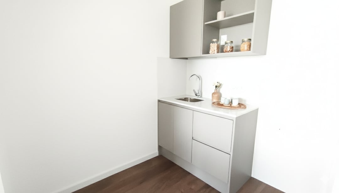Apartamento de un dormitorio en quinto piso con orientación Norte, lateral, cocina integrada y balcón. Incluye cochera individual.