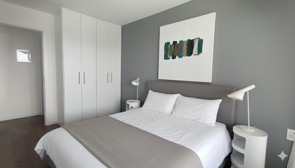 Con un diseño elegante y luminoso, fachada de vidrio con líneas curvas que reflejan la tranquilidad del paisaje lacustre. Se conforma por 7 niveles con 65 unidades, que van desde monoambientes hasta apartamentos de 4 dormitorios, algunos con jardín o dúplex con vista al lago.